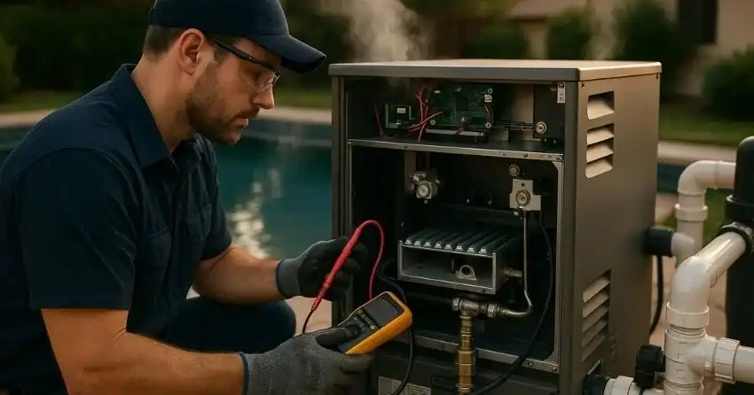 Pool heater repair problems in Mount Brydges? HVAC Mount Brydges finds the cause, replaces igniters, sensors, gas valves, control boards, and heat exchangers, clears scale, and confirms operation so the water warms up without unnecessary upsells.